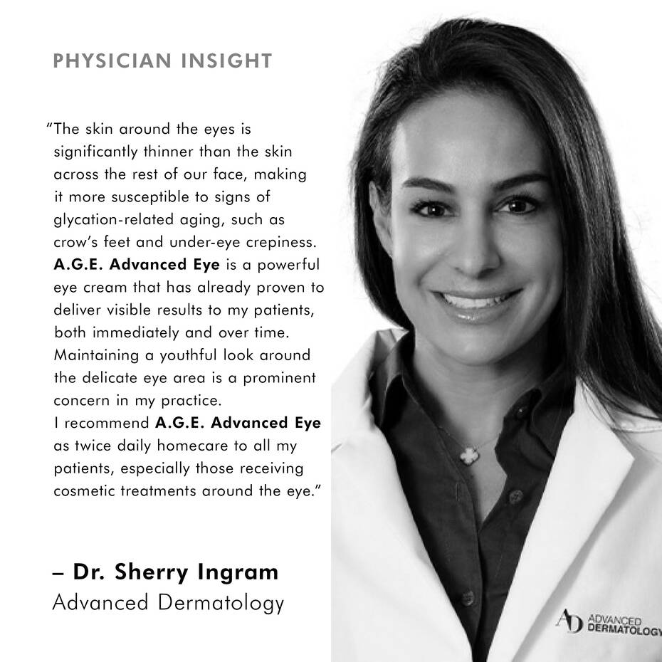A.G.E. Soin contour des yeux avancé est une crème contour des yeux nouvelle génération qui lutte contre l'apparence des cernes, des pattes d'oie et des poches, liées aux produits de glycation avancée (AGE), un facteur majeur du vieillissement cutané. Cette crème soyeuse est formulée pour la zone délicate du contour de l'œil grâce à une puissante combinaison de Proxylane™, un concentré de flavonoïdes, d'acide glycyrrhétinique et de Matrixyl 3000. Elle contient également de l'acide glycyrrhétinique, de la caféine et un mélange de diffuseurs optiques qui répartissent la lumière et redonnent instantanément de l'éclat aux yeux fatigués et ternes, quelle que soit la carnation.