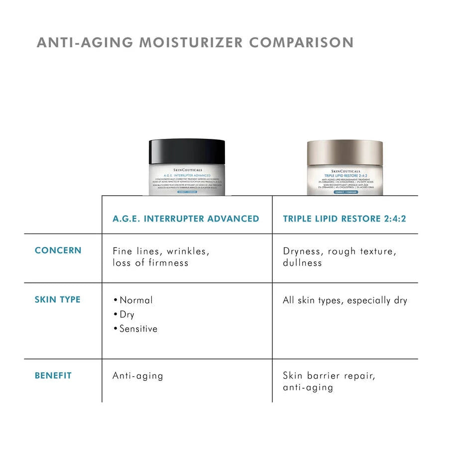 A.G.E. Interrupter Advanced is a potent corrective cream treatment that helps reverse visible signs of aging impacted by collagen decline and glycation, including wrinkles, laxity, and dullness.