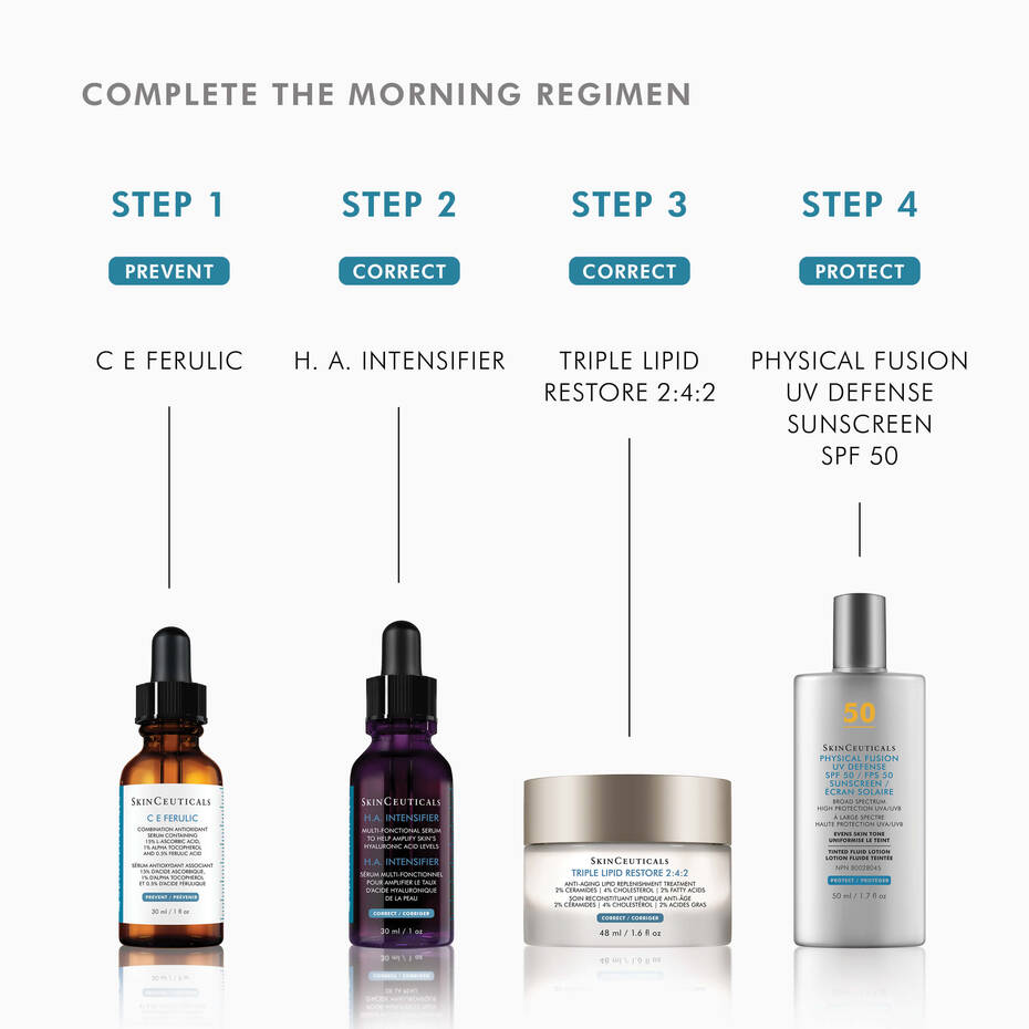 首先,取少量乳霜于指尖。以打圈的方式温热并融化乳霜。每日涂抹一至两次于面部、颈部和胸部。如果早上使用,请在涂抹 SkinCeuticals 维生素 C 抗氧化精华后、SkinCeuticals 防晒霜前使用。如果晚上搭配视黄醇产品使用,请在涂抹视黄醇后使用。